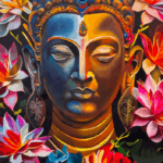 BUDDHA AND LOTUS BLOSSOM UNITE IN HARMONIOUS CANVAS" SIZE: 36" x 60" INCH MEDIUM: ACRYLIC ON CANVAS YEAR:2023