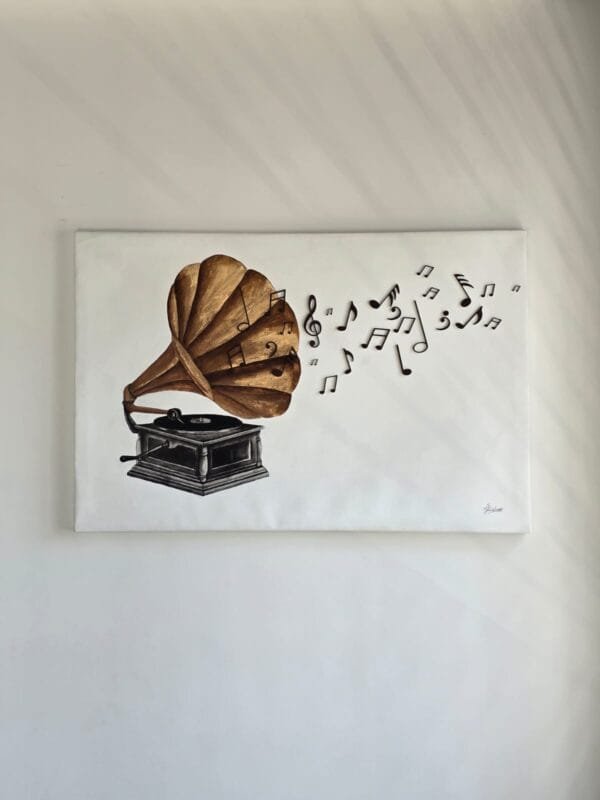 A CAPTIVATING GRAMOPHONETHEMED PAINTING THAT REVIVES
