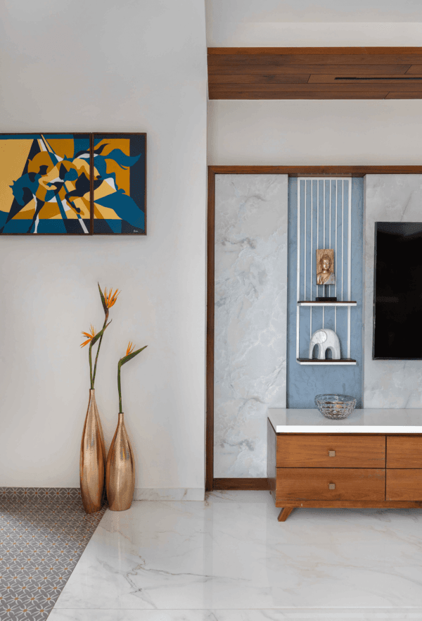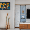THIS ABSTRACT PAINTING TRANSFORMS AN ELECTRIC DB BOX INTO A CAPTIVATING WORK OF ART, SEAMLESSLY BLENDING FUNCTIONALITY WITH AESTHETICS. INSPIRED BY THE CLIENT’S LOVE FOR HORSES, THE ARTWORK FEATURES AN ABSTRACT DEPICTION OF A HORSE, SYMBOLIZING STRENGTH AND GRACE. THE USE OF BLUE AND YELLOW TONES ALIGNS PERFECTLY WITH THE INTERIOR SHADES, CREATING A HARMONIOUS AND VIBRANT CENTERPIECE IN THE MAIN HALL.
